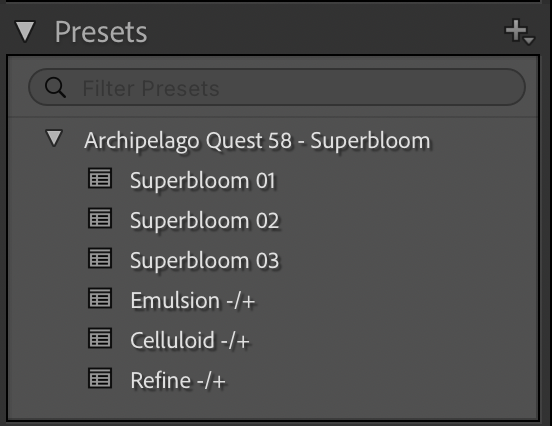 Superbloom 01: Lifted, luminous tones with a soft, light and airy quality.
